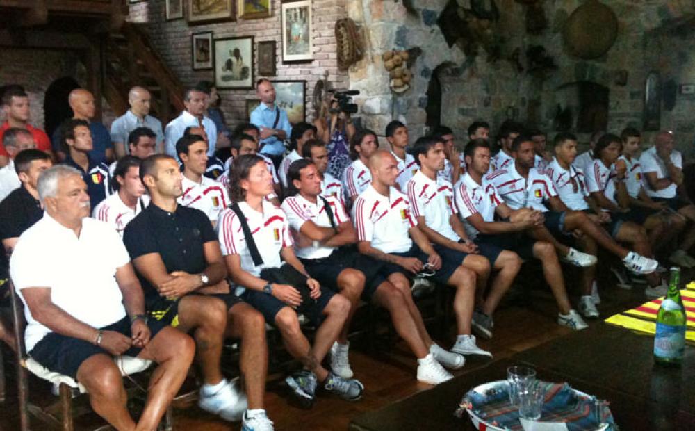 Giocatori e staff tecnico del Soccer Team durante la conferenza stampa di presentazione