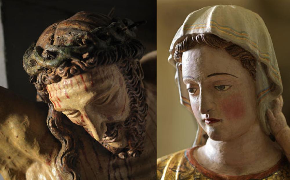 Particolari del crociifisso e della statua della Madonna del Carmine di Campolongo sul Brenta (foto Bozzetto Edizioni)