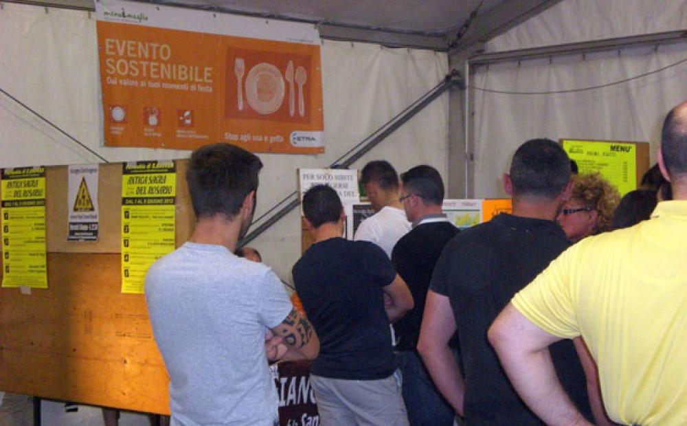 Sotto lo slogan "Dai valore ai tuoi momenti di festa", si utilizzeranno inoltre due erogatori di acqua alla spina, 330 caraffe da un litro o da mezzo per portarla ai tavoli (niente bottiglie di plastica), una lavastoviglie industriale per ripulire le stoviglie e un contenitore da 150 litri per raccogliere l'olio alimentare esausto dopo la cottura o la frittura dei cibi.