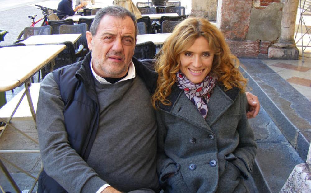 Gianfranco Vissani e Michela Rocco di Torrepadula durante una pausa delle riprese della puntata dedicata a Bassano (foto Alessandro Tich)