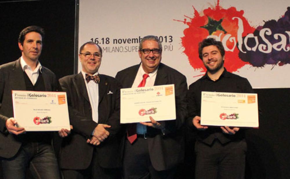 I tre premi "made in Bassano" a Golosaria 2013. Da sinistra: Fabio Dalle Nogare, il patron Paolo Massobrio, Roberto Astuni e Riccardo Antoniolo