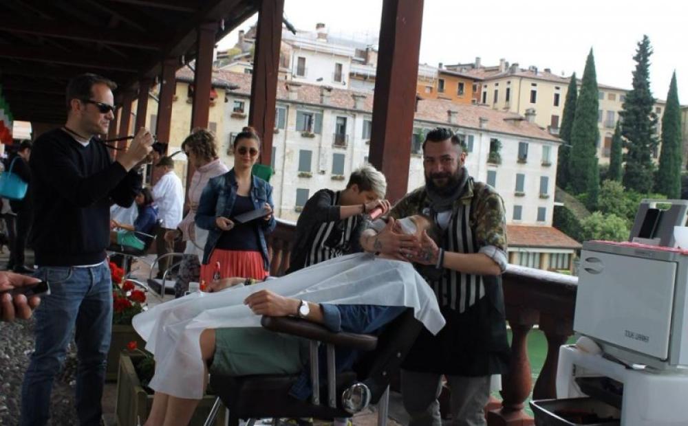 I parrucchieri e barbieri di Bassano hanno risposto all’appello di Ilario Baggio, armati di rasoi e forbici, a disposizione di passanti e turisti per una raccolta fondi per salvare il ponte.