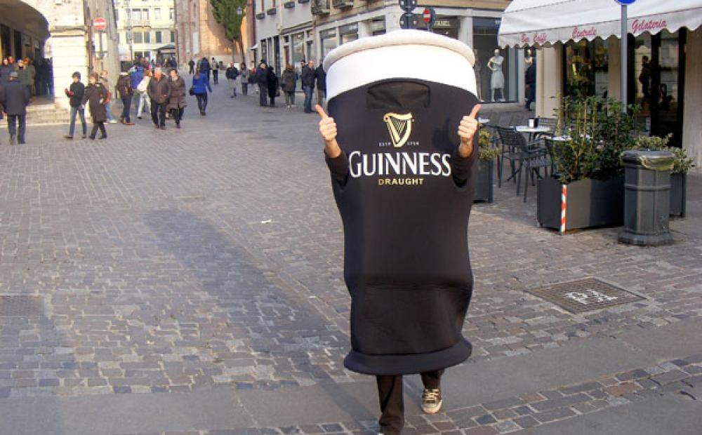Mi è sembrato di vedere una birra. Grande e scura, di una celeberrima marca irlandese, che cammina tra le piazze di Bassano. Eppure non avevo bevuto, né birra nè altre bevande alcoliche. Visto che mi è passata davanti, le ho scattato anche una foto, dove la birra alza i pollici in segno di “Ok”.