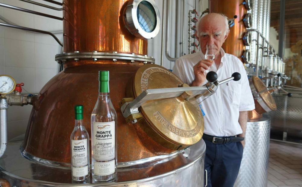 Vittorio Capovilla con il suo alambicco. Foto di Gianpaolo Giacobbo