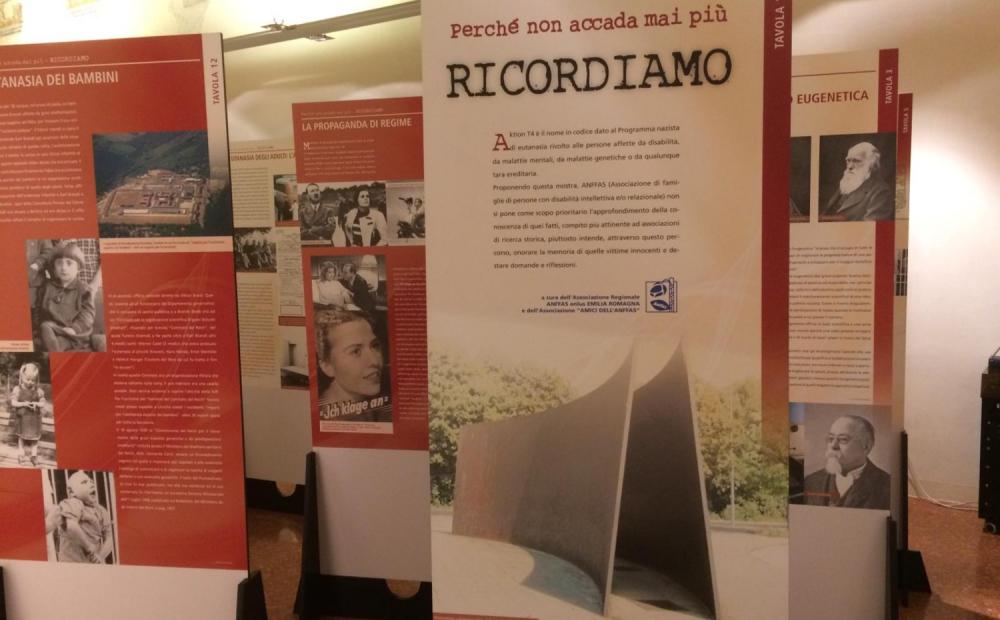Dedicata alla cosiddetta “Shoah dei disabili”, l’operazione “Aktion t4”, dove T4 stava per Tiergartenstrasse 4, voluta da Adolf Hitler fin dal 1939 e operativa dal 1940 per sterminare disabili, malati mentali e chiunque fosse affetto da malattie ereditarie, considerati esseri imperfetti e, dunque, non degni di esistere, la mostra vuol essere un'occasione per ricordare le tragedie appartenenti al passato della seconda guerra mondiale, per riflettere su altre vergognose pagine della nostra storia anche recente, per onorare la memoria di tante vittime innocenti e per celebrare i valori della convivenza umana e del rispetto della diversità. È bene ricordare anche che l’operazione omicida a cui fa capo la mostra fu interrotta a un certo punto dall’apparato nazista anche grazie all’avversione crescente e netta della popolazione.