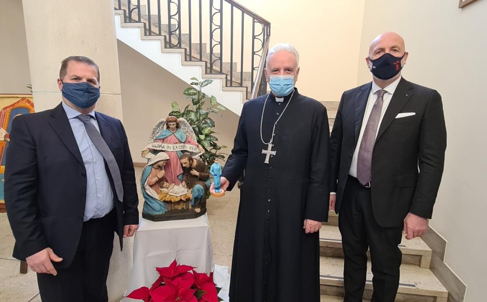Confartigianato Imprese Vicenza e Coldiretti Vicenza donano al vescovo Beniamino Pizziol una statuina di un’infermiera da disporre nel Presepe