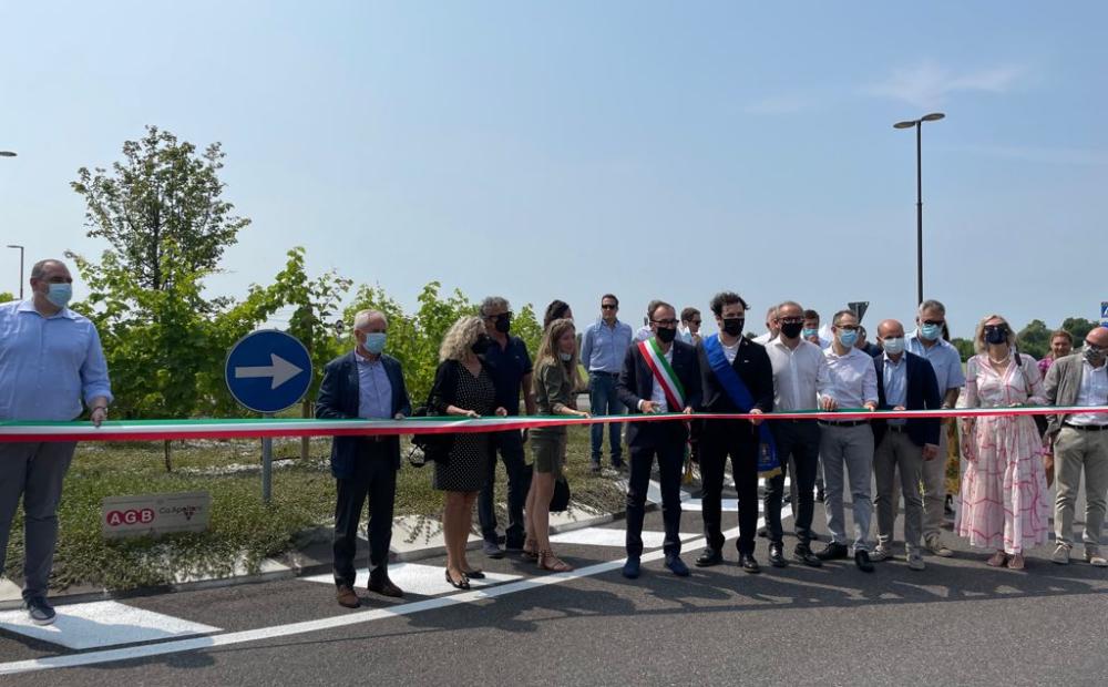 È attiva già da più di un anno, ma è stata inaugurata ufficialmente oggi dopo vari rinvii dovuti all’anno della pandemia. È la rotatoria detta “AGB - Ca’ Apollonio”, dai nomi delle due aziende che vi si affacciano sul lato nord, a Romano Alto in Comune di Romano d’Ezzelino.