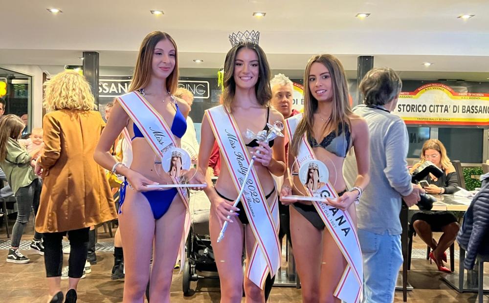Le prime tre concorrenti classificate. Al centro Gioia Pierobon, Miss Rally Città di Bassano 2022