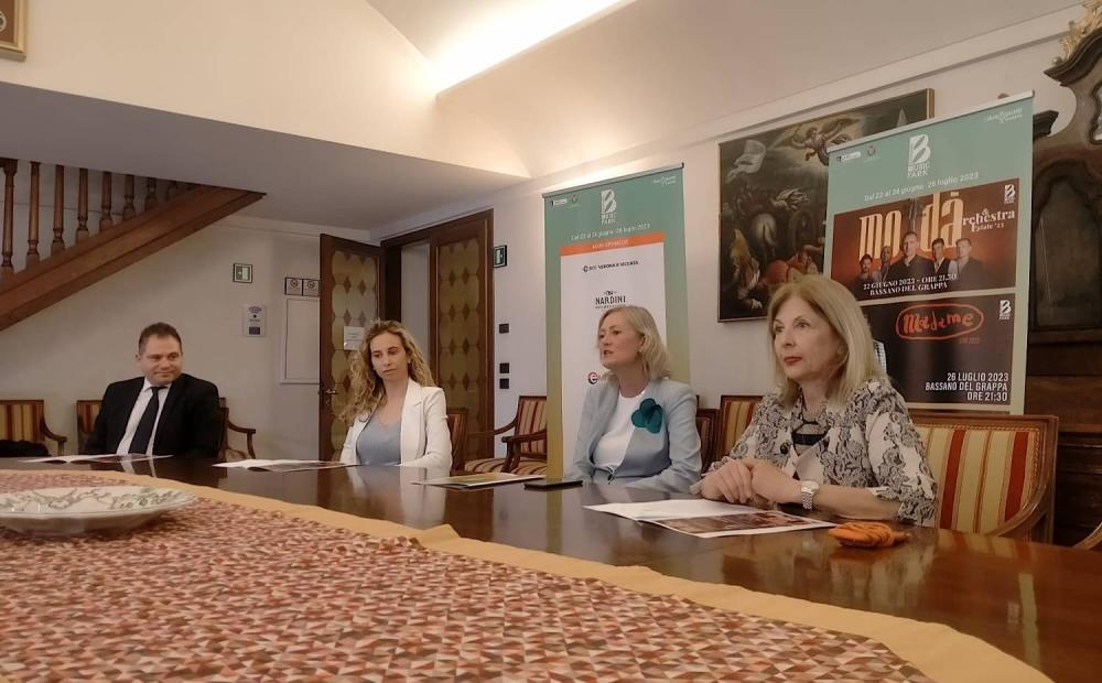 Bassano Music Park è stato presentato in conferenza stampa in municipio dal sindaco Elena Pavan, dall’assessore alla Cultura Giovannella Cabion e da Francesca Bordignon per DuePunti Eventi.