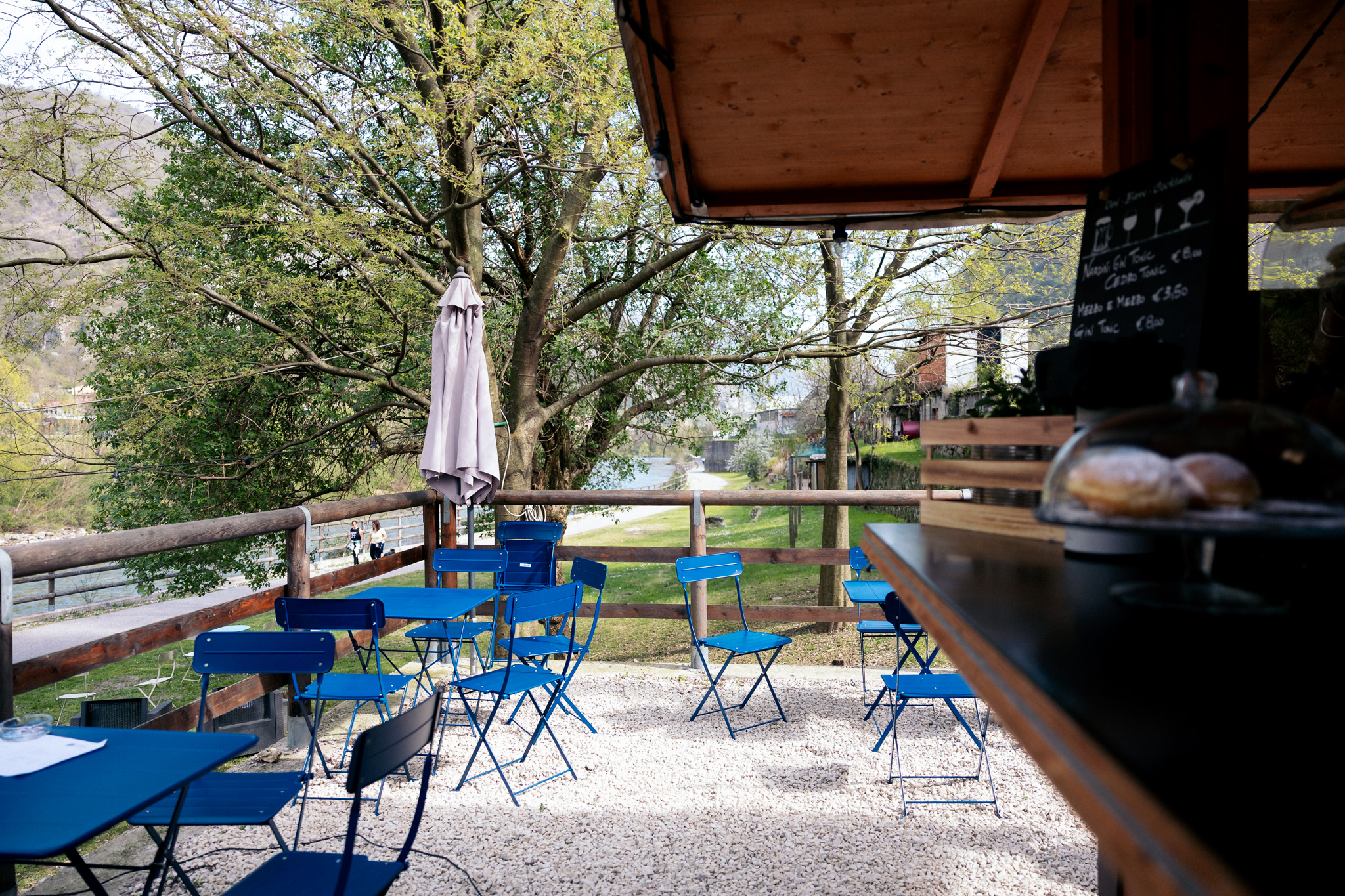 Il Chiosco Contarini dell’albergo Contarini, sul sentiero pedonale che arriva da Bassano e prosegue verso Valstagna, invece, si trova su una piccola spiaggia naturale, sul fiume. Questo salottino tra gli alberi, angolo di pace e tranquillità, era nato per i ciclisti, ma la sua riva ombreggiata d’estate piace a tutti. Da giugno, inoltre, si può usufruire di un altro spazio naturale dell’albergo, il Bosco Contarini, creato sfruttando i terrazzamenti più bassi, che si anima in particolare durante le feste “Birra in bosco”.