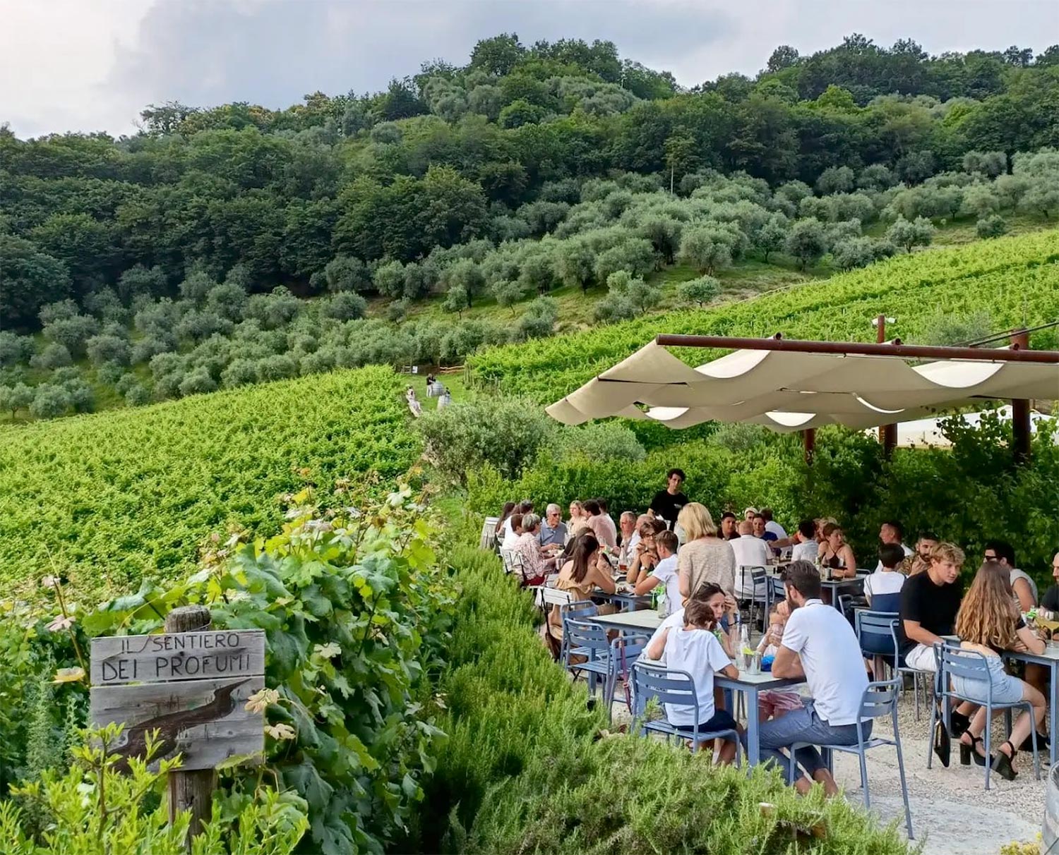 L’aperitivo immerso nella quiete dei vigneti, con vista mozzafiato sulle colline al tramonto, lo offre Vignaioli Contrà Soarda. I tavoli all’aperto, tra i filari, creano un’atmosfera romantica e spensierata. Si possono degustare direttamente i vini dell’azienda di Strada Soarda 26, accompagnati da vari stuzzichini genuini, dalla celebre “doga”, con affettati di torello di produzione propria e formaggi di malga, alle bruschette con pane e olio extravergine, passando per le verdure in agrodolce dei loro orti.