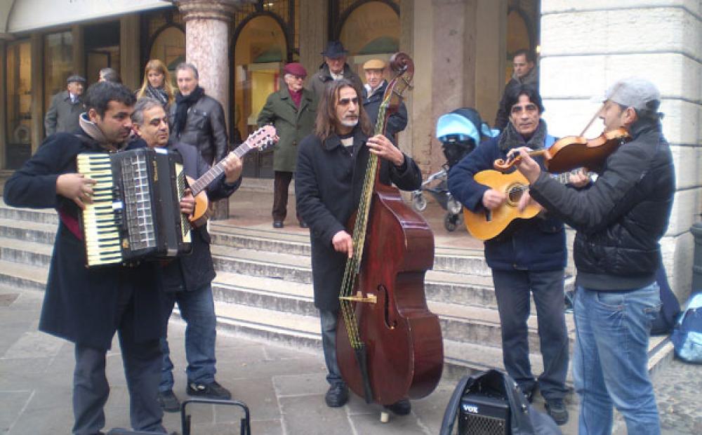 Sono cinque, tutti rumeni e ottimi strumentisti. L'insolita band da alcuni giorni sta animando con incredibile successo lo struscio in piazza di turisti e bassanesi