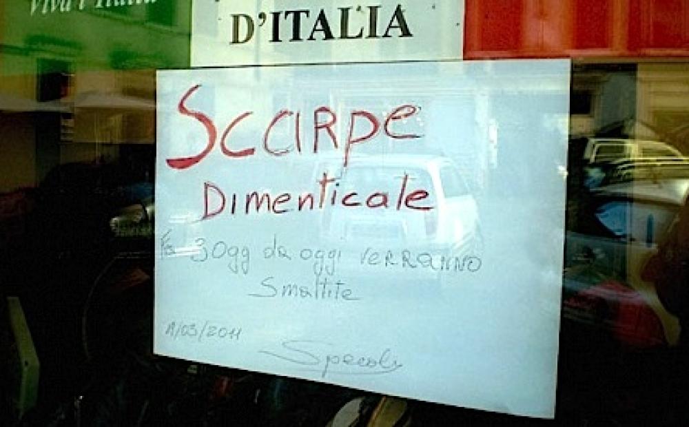 L'avviso è datato 19 marzo 2011: ancora un paio di settimane, dunque, e se i legittimi proprietari non verranno a ritirarsi le scarpe riparate, quest'ultime saranno eliminate dal negozio.