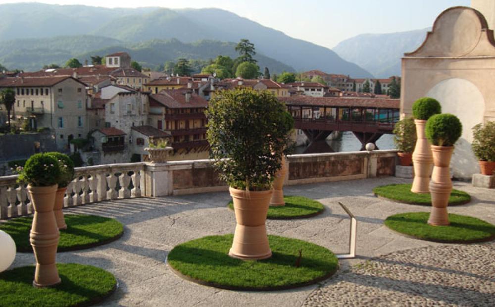 Il giardino in allestimento nella terrazza panoramica di Palazzo Sturm